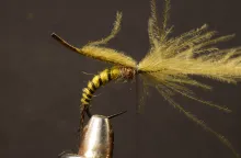 You can vary the color as you seem fit. The version here is a yellowish olive, not unlike many green drake nymphs and emergers, but choosing a cream color for body and wing, and a tan for the foam will make a very good generic danica-like mayfly.